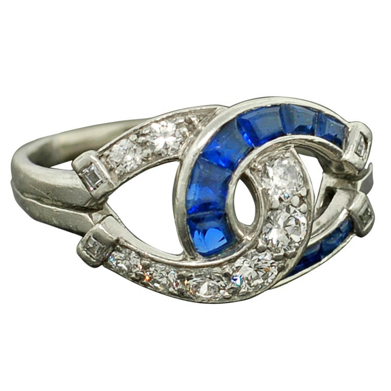 Edwardian Diamond and Sapphire Platinum Double Horseshoe ...