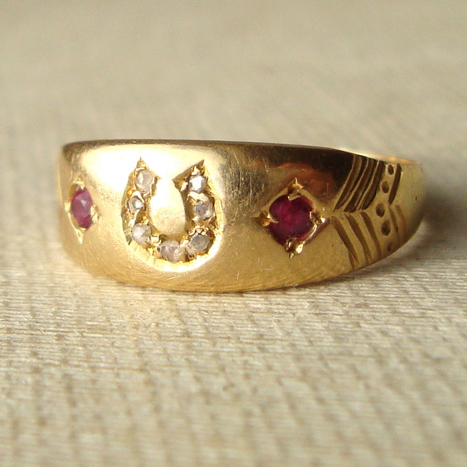 Antique Diamond Horseshoe Ring Diamond & Ruby Engagement