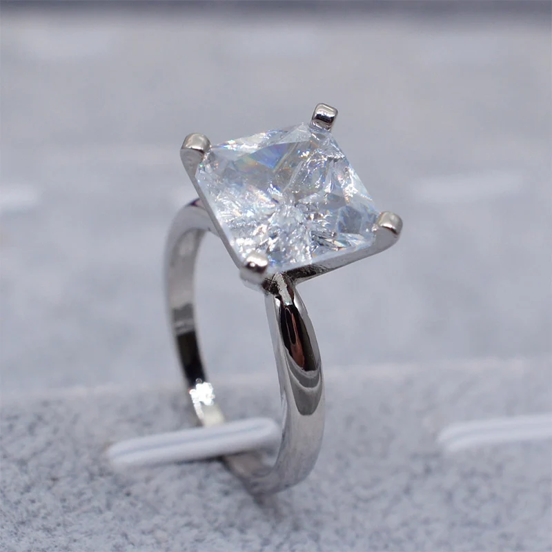 The center diamond is perfectly pricess cut giving the ring a luxurious sparkle and richness.
